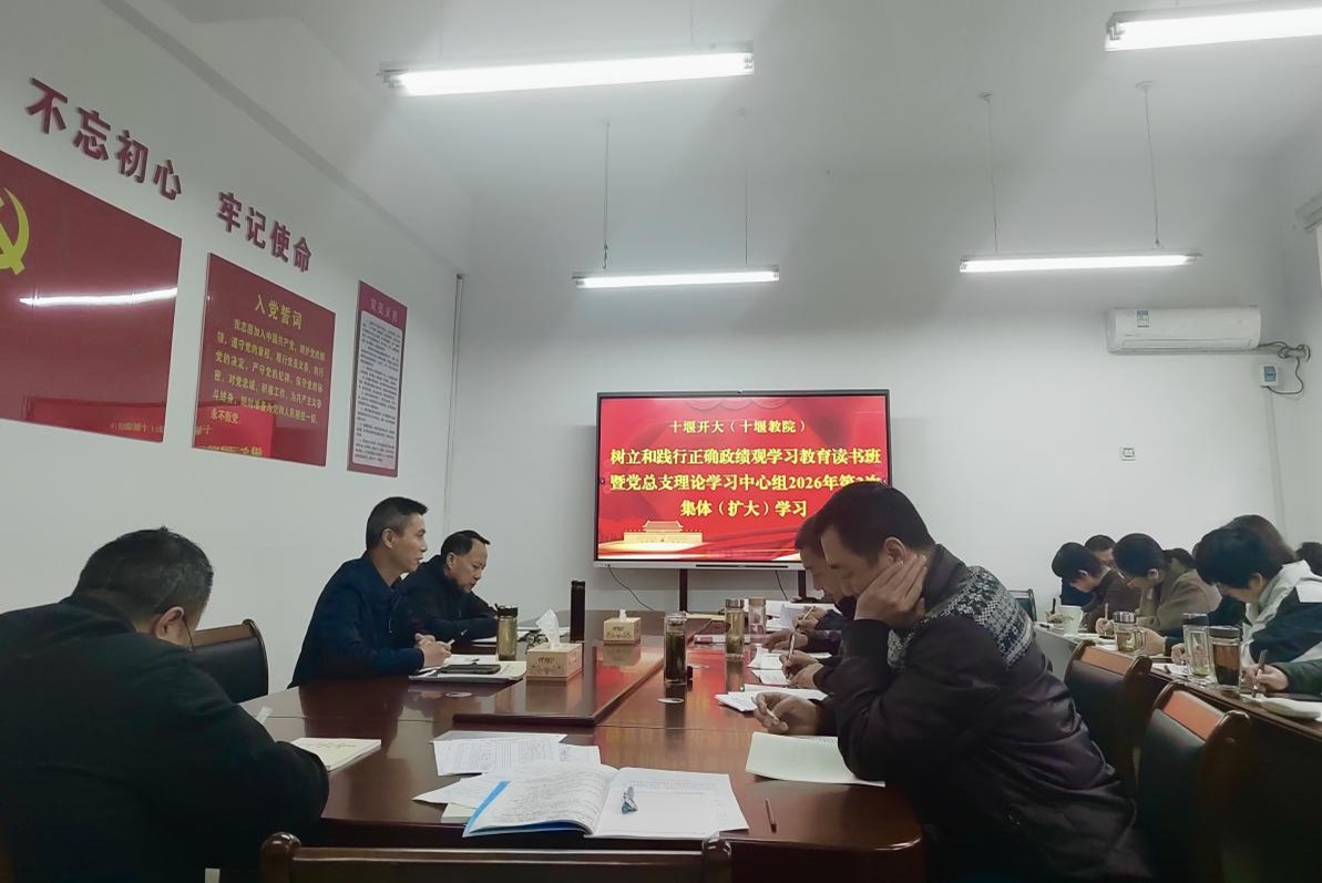 326日上午,十堰开大(十堰教院)举行树立和践行正确政绩观学习教育读书班暨党总支理论学习中心组2026年第2次集体(扩大)学习。全体党员及党外知识分子参加学习,党总支书记李辉主持会议并讲话。