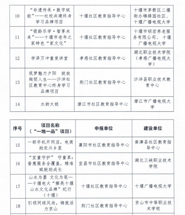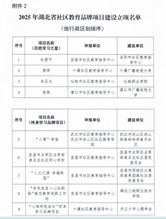 近日,湖北省社区教育指导中心公布了2025体系共建项目结果,十堰社区教育指导中心组织申报的9个项目成功获批立项,立项数位居全省第一。